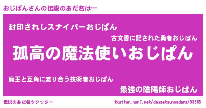 | ヒーロー風カッコイイあだ名 | 『ウルトラ戦士オジパン』『幻影騎士オジ』 |