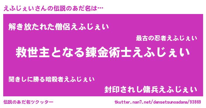 | 意味不明あだ名 | 『自称えふじぇい』 |