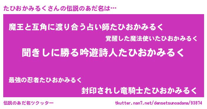 | 意味不明あだ名 | 『自称たひおかみるく』 |