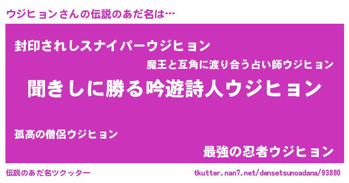 | ヘコむあだ名 | 『ウジヒョン(小並感)』『ウジもー』 |