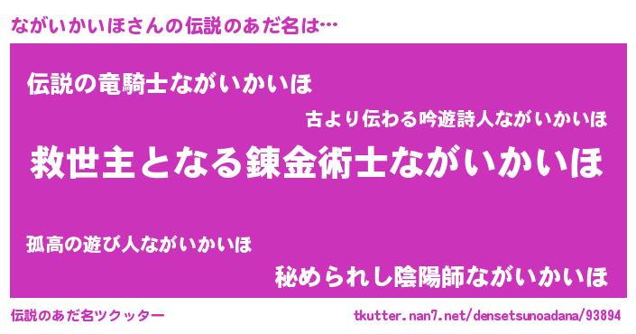 | ヒーロー風カッコイイあだ名 | 『仮面ナガダー』『最強戦士ナガイカイホ』 |