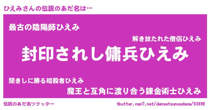 | 男性向けラノベタイトル風あだ名 | 『うちのひえみが世界を掌握している!』 |