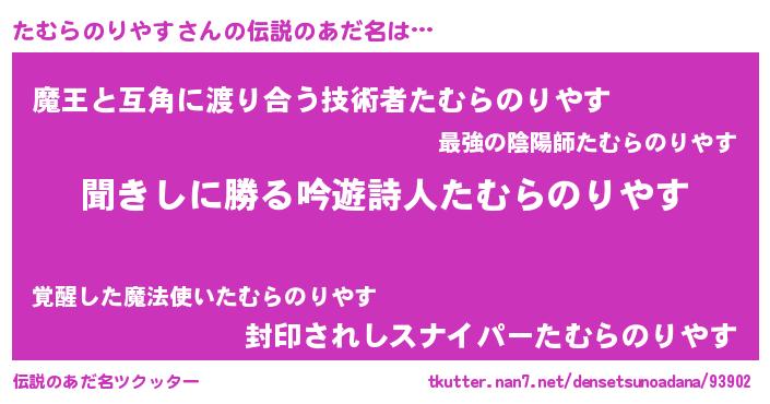 | 男性向けラノベタイトル風あだ名 | 『たむらのりやすという概念が存在しない退屈な世界 』 |