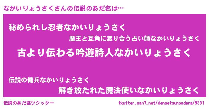 | 意味不明あだ名 | 『永久保存なかいりょうさく』 |