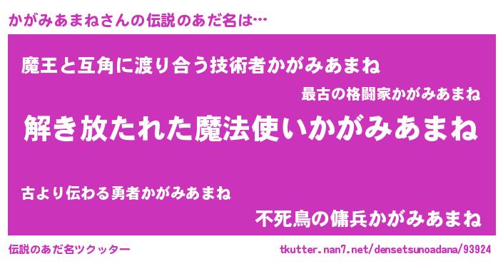 | 意味不明あだ名 | 『とにかく怪しいかがみあまね』 |