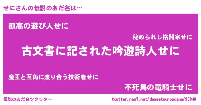 | ポケモン風あだ名 | 『ゼニセニ』『ヒセニ』『セニチュウ』 |