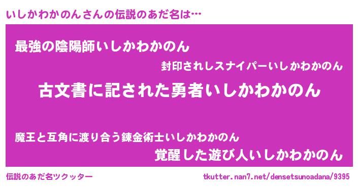 | ヒーロー風カッコイイあだ名 | 『ネオイシカワカノン』『仮面イシダー』 |