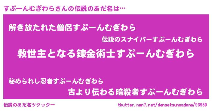 | ヒーロー風カッコイイあだ名 | 『慈愛の使者すぷーんむぎわら』 |
