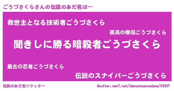 | ヒーロー風カッコイイあだ名 | 『ネオゴウヅサクラ』『暗黒騎士ゴウ』 |