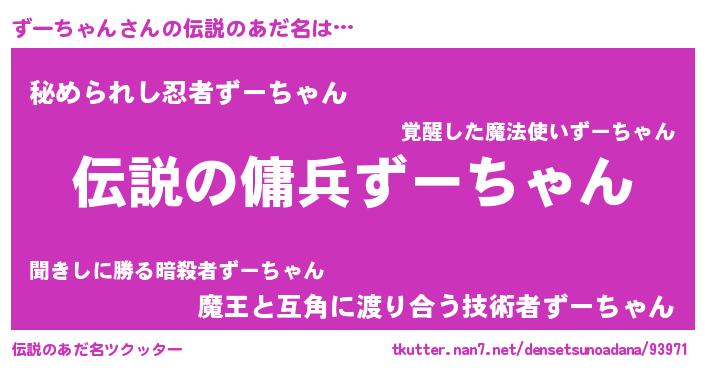 | ヒーロー風カッコイイあだ名 | 『スーパーズーチャン』『仮面ズーダー』 |