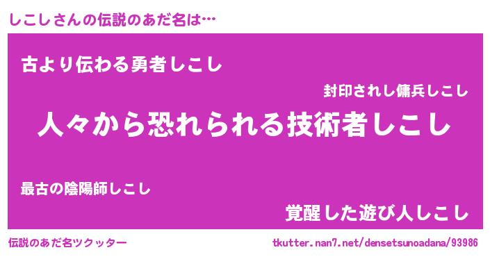 | 胡散臭い通販商品みたいなあだ名 | 『ガンによく効く高麗人参…その名も「しこし」』 |