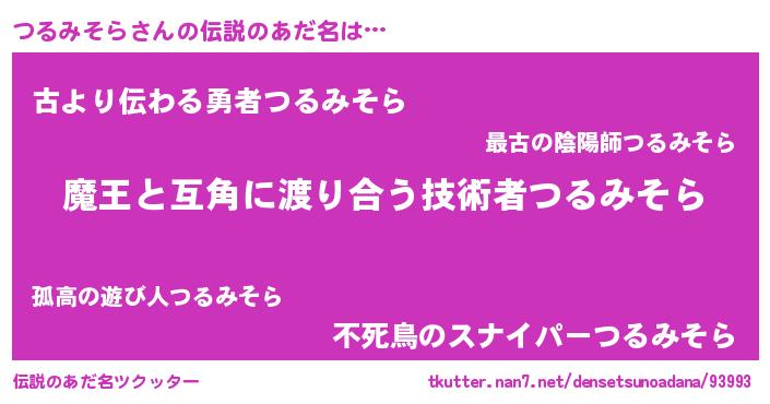 | ヒーロー風カッコイイあだ名 | 『仮面ツルダー』『愛の使者つるみそら』 |