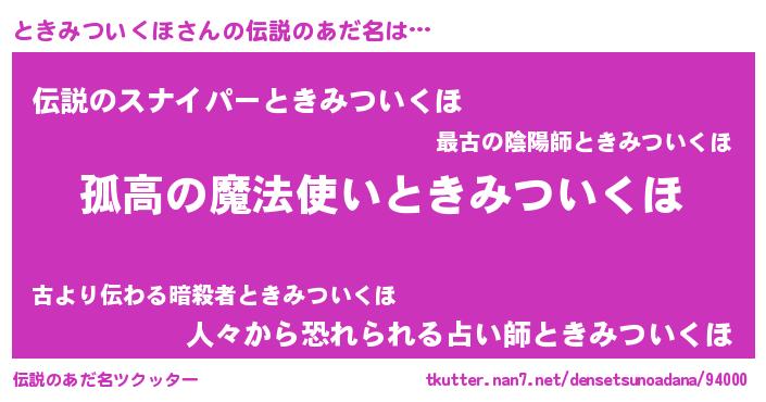 | ポケモン風あだ名 | 『トキゴンZ』『トキキング』 |