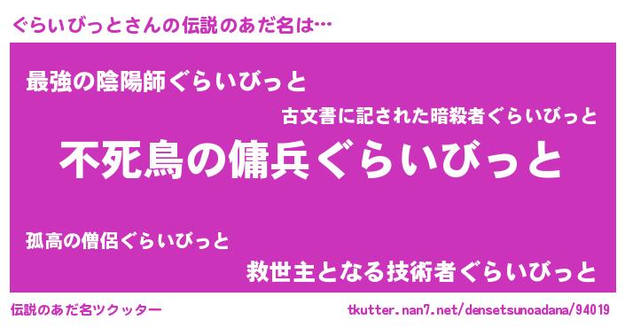 | 女子向けラノベタイトル風あだ名 | 『ぐらいびっと姫と円卓の騎士』 |