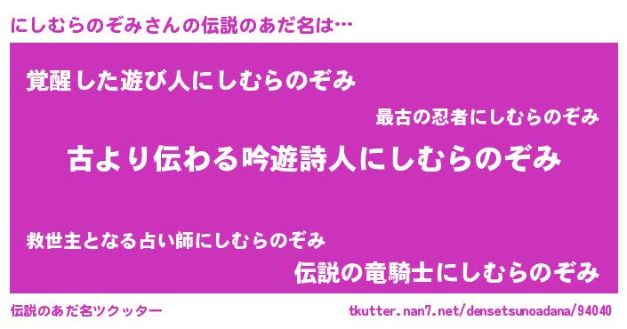 | 意味不明あだ名 | 『永久保存にしむらのぞみ』 |