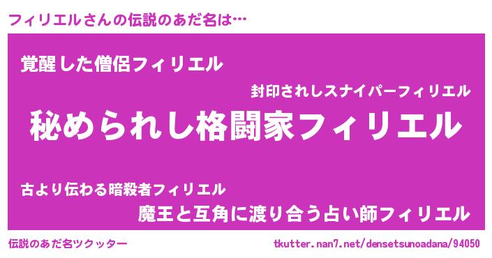 | 欧米人風あだ名 | 『フィリエルクリステル』 |