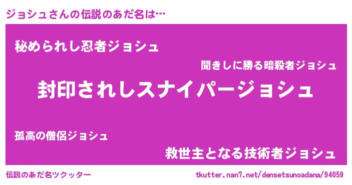 | 意味不明あだ名 | 『自称ジョシュ』『ペロリンジョシュ』 |