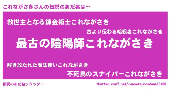| 女子向けラノベタイトル風あだ名 | 『これながさき伯爵の花嫁』 |