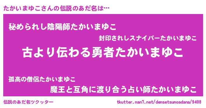 | ヘコむあだ名 | 『たかいまゆこ(苦笑)』『牛乳』 |