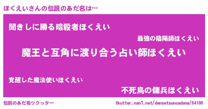 | ヒーロー風カッコイイあだ名 | 『愛の使者ほくえい』『ネオホクエイ』 |