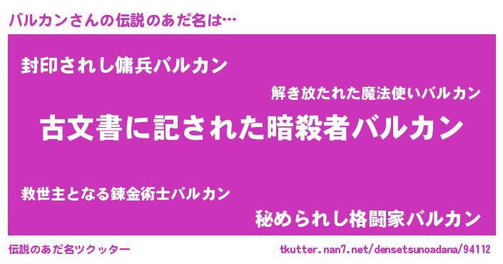 | ヒーロー風カッコイイあだ名 | 『究極戦士バルカン』『ネオバルカン』 |