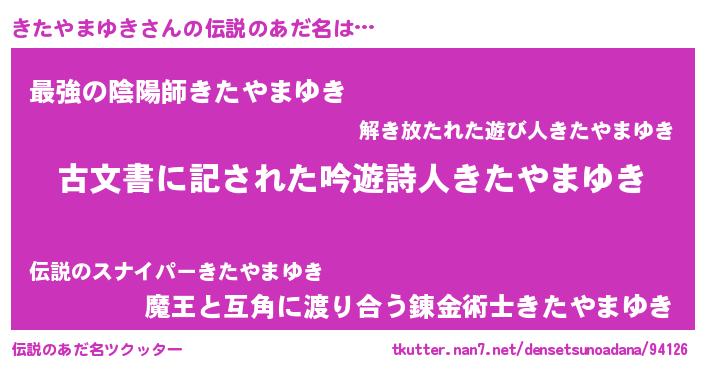 | 意味不明あだ名 | 『永久保存きたやまゆき』 |