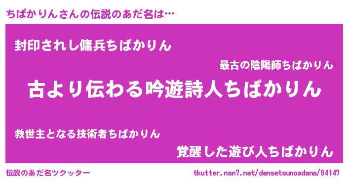 | 男性向けラノベタイトル風あだ名 | 『ちばかりんという概念が存在しない退屈な世界 』 |