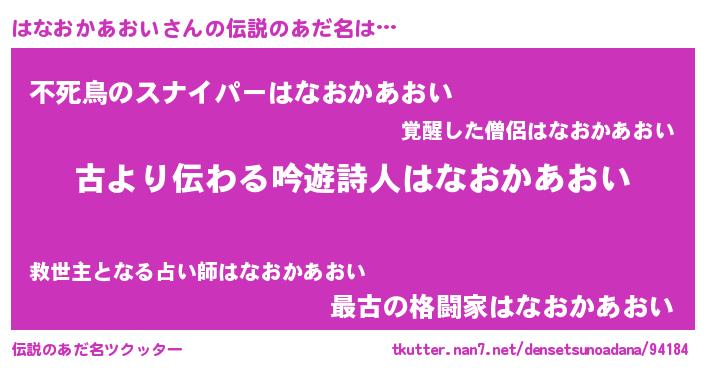 | ヒーロー風カッコイイあだ名 | 『最強戦士ハナオカアオイ』 |