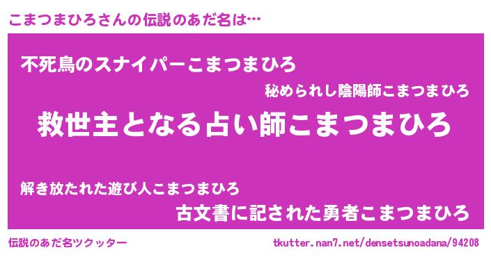 | ヘコむあだ名 | 『こまにゅー』『こまつまひろ(遠い目)』 |
