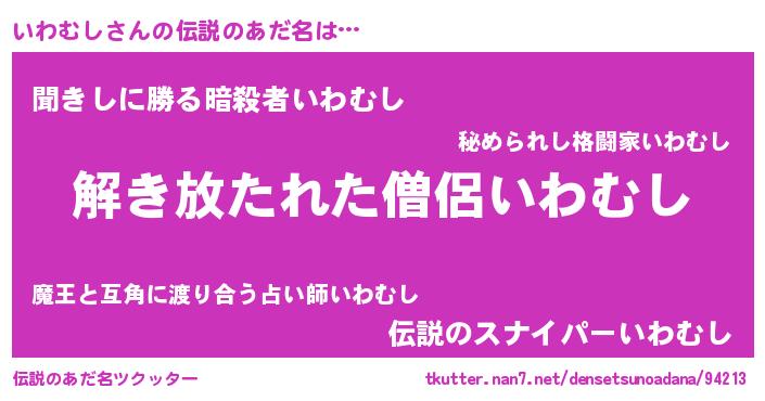 | 意味不明あだ名 | 『自称いわむし』『永久保存いわむし』 |