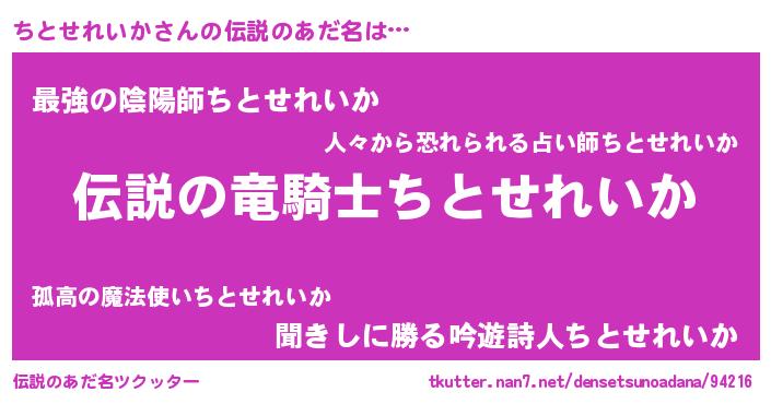 | 意味不明あだ名 | 『住所不定無職ちとせれいか(13歳)』 |