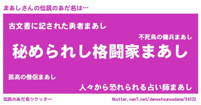 | ヒーロー風カッコイイあだ名 | 『ウルトラまあしマン』『仮面マアダー』 |