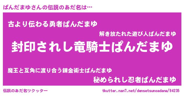| ヒーロー風カッコイイあだ名 | 『スーパーパンダマユ』『ネオパンダマユ』 |
