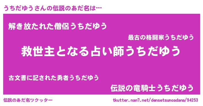 | ヒーロー風カッコイイあだ名 | 『究極戦士ウチダユウ』『魔戒騎士ウチ』 |