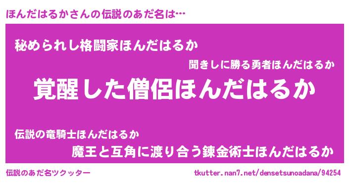 | ポケモン風あだ名 | 『ヒホンダハルカ』『ホンダダネ』 |