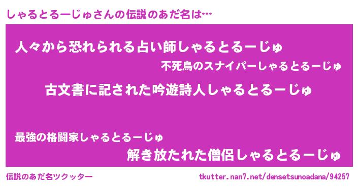 | 意味不明あだ名 | 『永久保存しゃるとるーじゅ』 |