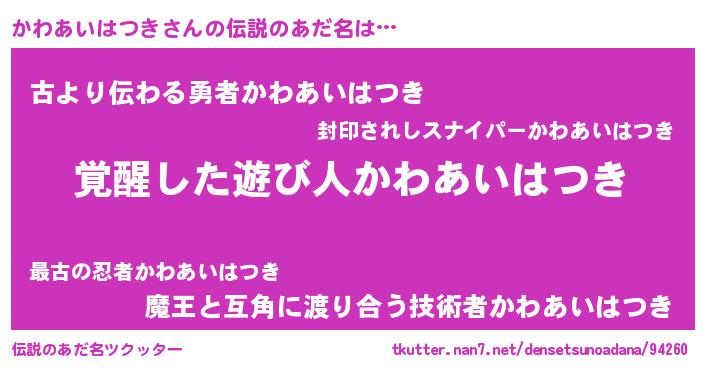 | ヘコむあだ名 | 『かわぷりん』『かわあいはつき(小並感)』 |
