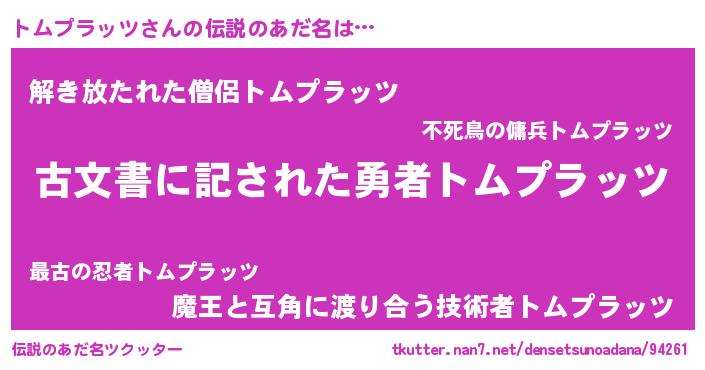 | 意味不明あだ名 | 『永久保存トムプラッツ』 |