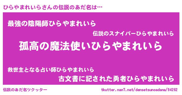 | 胡散臭い通販商品みたいなあだ名 | 『信頼と実績のサプリメント…その名も「ひらやまれいら」』 |