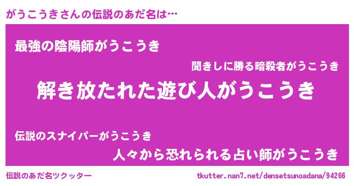 | 意味不明あだ名 | 『とにかく怪しいがうこうき』 |
