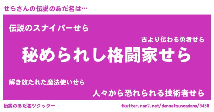 | 男性向けラノベタイトル風あだ名 | 『やはりせらの青春ラブコメはまちがっている 』 |