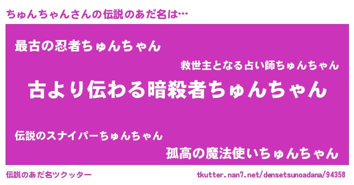 | 意味不明あだ名 | 『自称ちゅんちゃん』 |