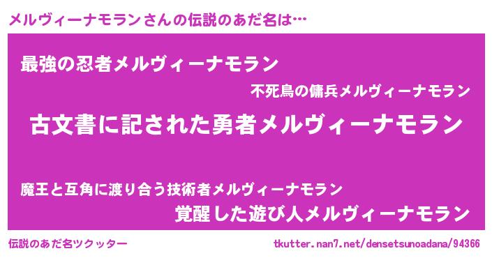 | ヒーロー風カッコイイあだ名 | 『究極戦士メルヴィーナモラン』 |
