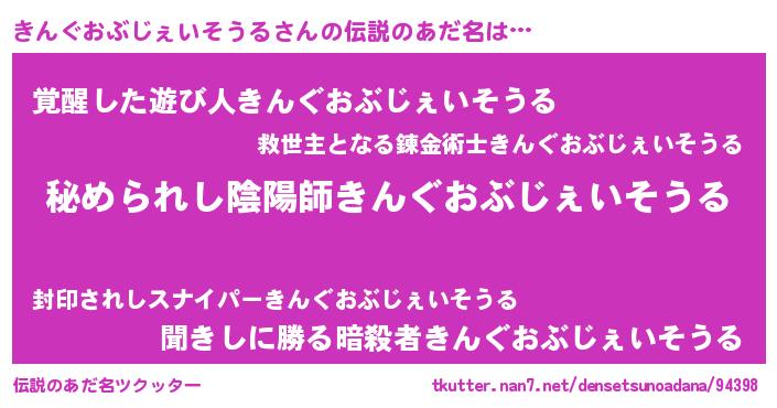 | 意味不明あだ名 | 『きんぐおぶじぇいそうるフォーエバー』 |