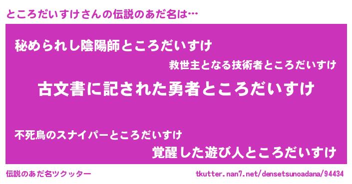 | 意味不明あだ名 | 『永久保存ところだいすけ』 |