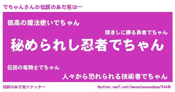 | 男性向けラノベタイトル風あだ名 | 『やはりでちゃんの青春ラブコメはまちがっている 』 |
