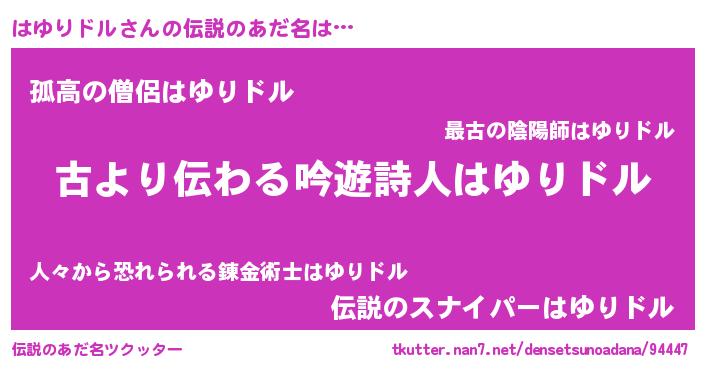 | 男性向けラノベタイトル風あだ名 | 『はゆりドルという概念が存在しない退屈な世界 』 |