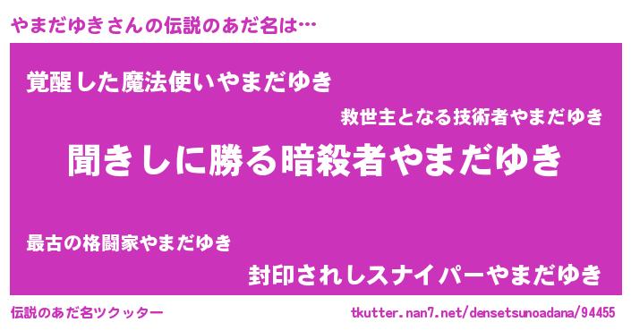 | 意味不明あだ名 | 『自称やまだゆき』『永久保存やまだゆき』 |