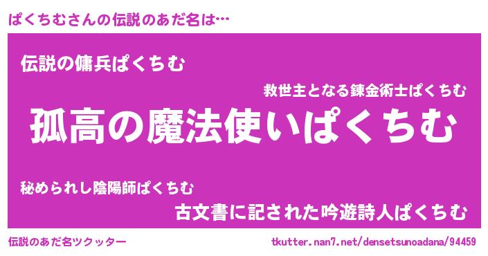 | 男性向けラノベタイトル風あだ名 | 『魔法科高校のぱくちむ』 |