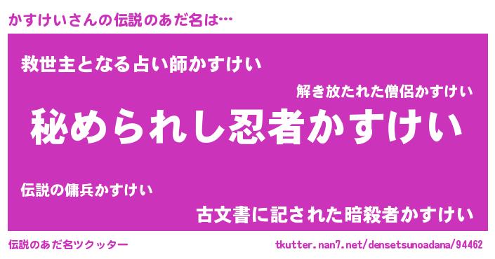 | ヒーロー風カッコイイあだ名 | 『ウルトラかすけいマン』『ネオカスケイ』 |